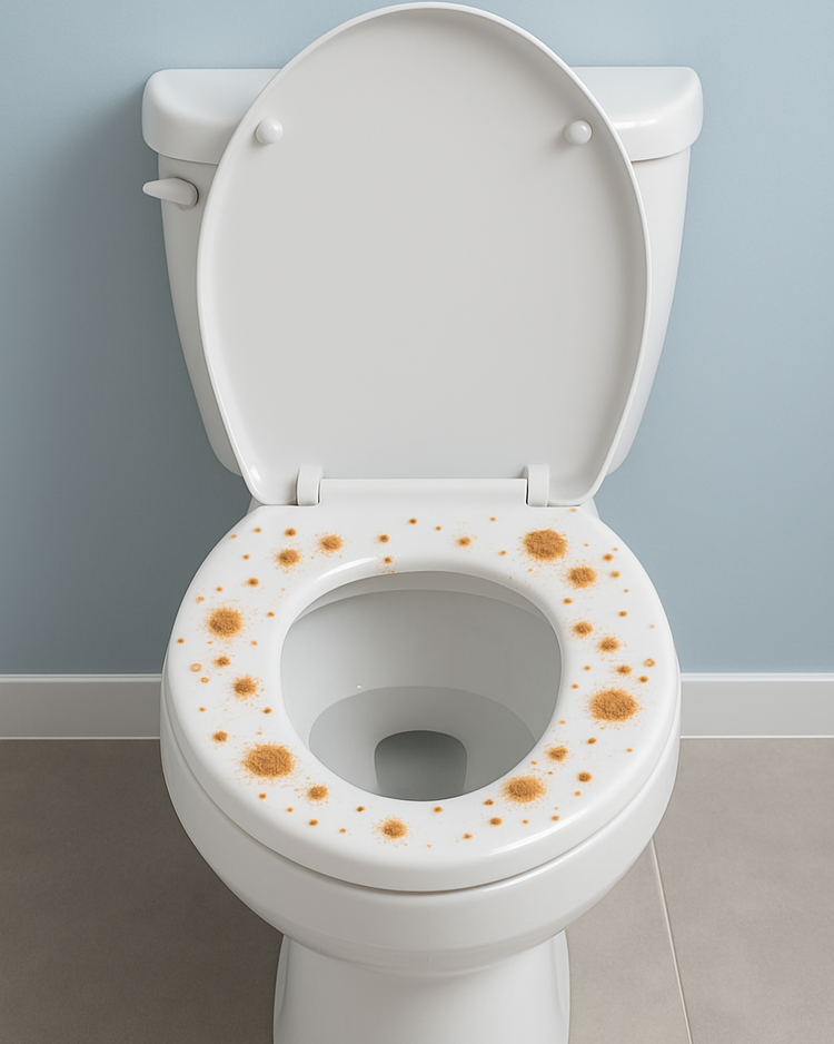Vuile, onhygiënische toiletbril vol met bacteriën en vlekken
